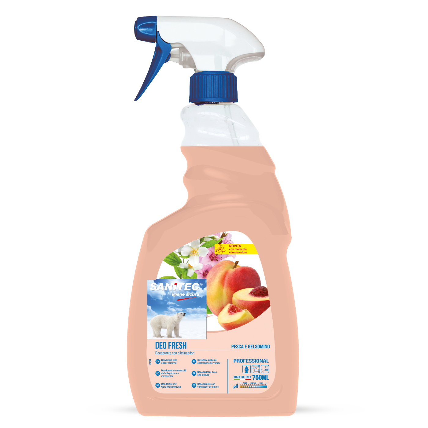 DEO FRESH Deodorante spray per ambienti senza propellenti a base di pregiate fragranze con molecola elimina odori. La sua formula elimina le molecole dei cattivi odori lasciando l’ambiente gradevolmente profumato. Melone Menta e Limone Pesca e Gelsomino