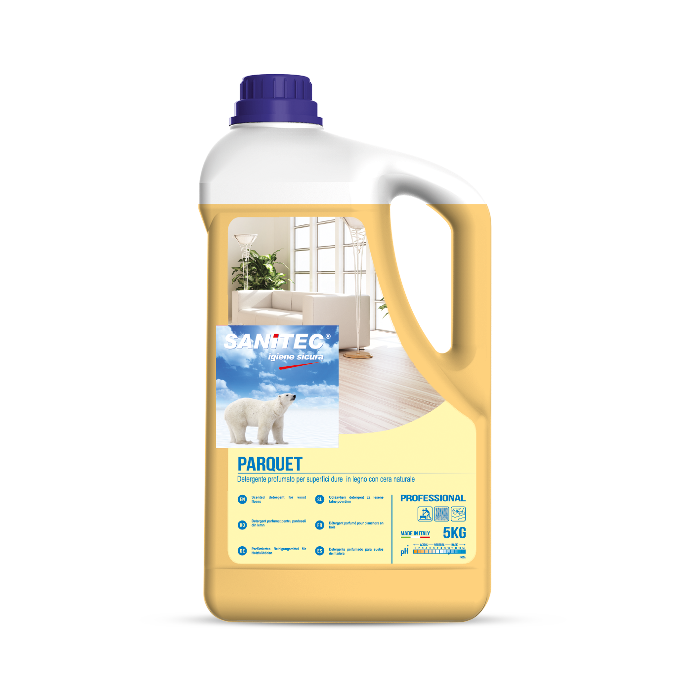 PARQUET Detergente neutro specifico per la pulizia quotidiana dei pavimenti in legno sia verniciati che incerati. Pulisce a fondo senza risciacquo garantendo un’elevata protezione e cura delle superfici trattate, lasciando l’ambiente gradevolmente profumato.